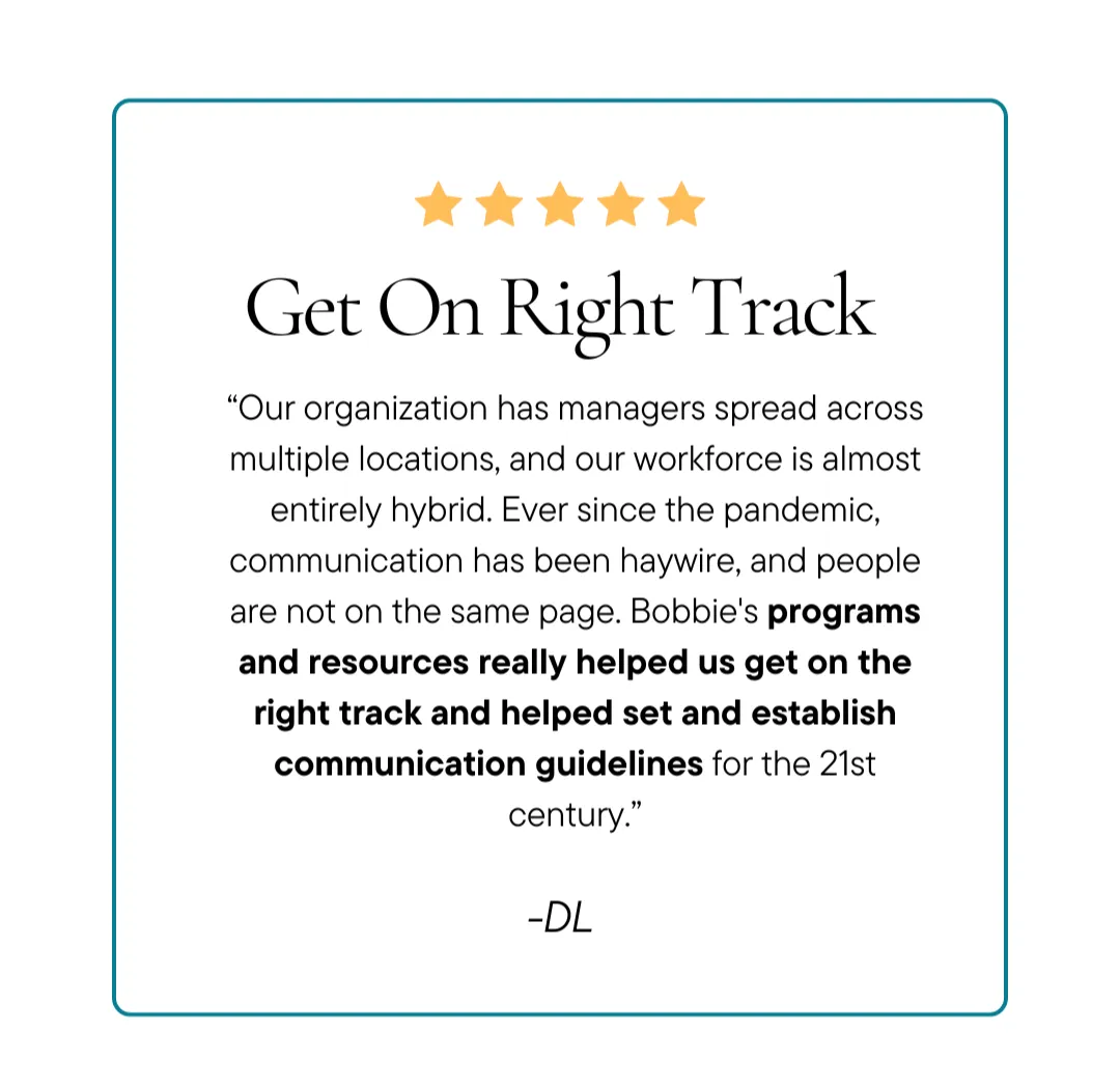 Bobbie continues to inspire others to grow and lead through performance consulting, executive coaching, and facilitating large-scale learning events. She believes that successful companies and skyrocketing careers are built from effective management, so she’s making these secrets available to every manager with a growth mindset.